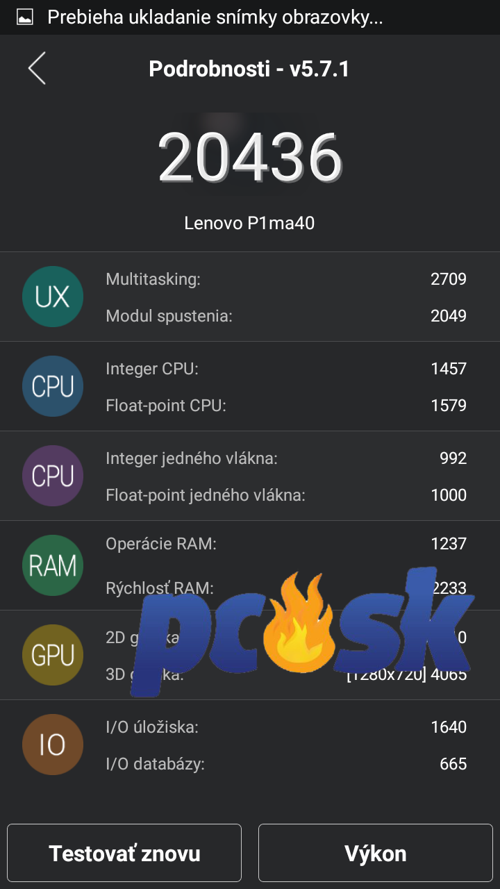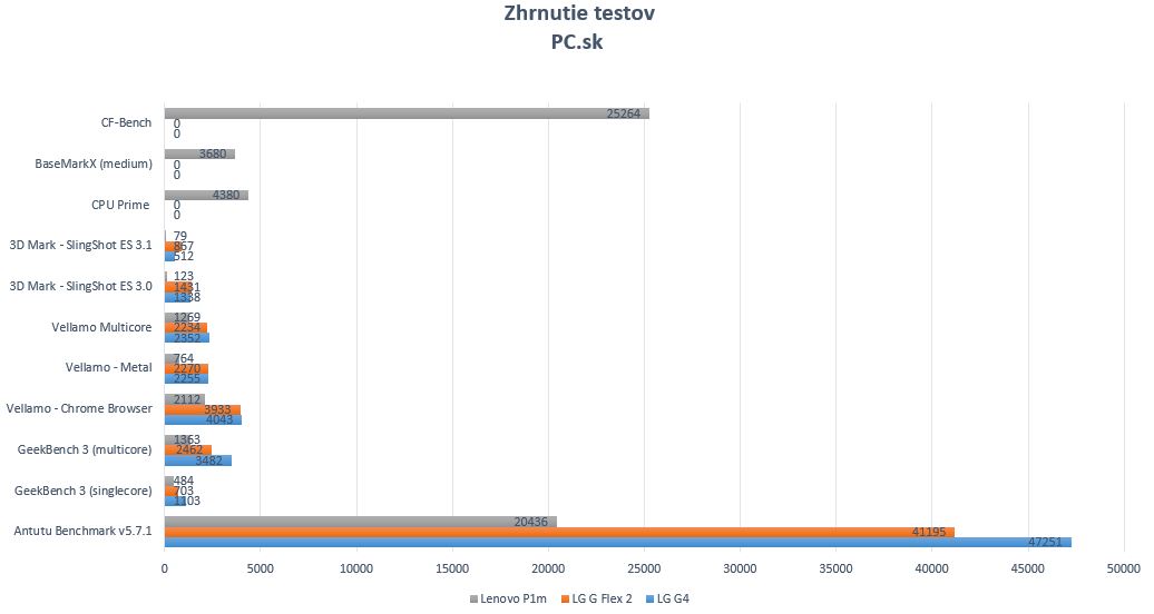 Rýchlosť zariadenia v systéme je výborná. Mierne lagy mu viem prepáčiť, lebo nie sú na dennodennom poriadku. Zato môže predovšetkým prítomnosť 2GB operačnej pamäte. Avšak výkon v benchmarkoch jednoznačne neoslní. Ide o podpriemer. Zato môže predovšetkým procesor s malou taktovacou frekvenciou. Ani grafická časť nie je žiaden trhač asfaltu. No s hrami ako SimCity Buildit či Asphalt 8 si poradí. V prípade druhej menovanej ale musíte znížiť detaily na „medium“. Vibe P1m dosahuje v teste Antutu len 20436 bodov, v prípade použitia 64 – bitovej verzie je výkon o niečo vyšší s výsledkom 21 103 bodov. Ostatné testy sú zhrnuté na obrázku.