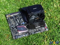A keď už je reč o ňom ideme sa pozrieť na neho. V prípade Dark Rock 3 veľmi silno odporúčam montovať ho na procesor tak, že vyberiete základnú dosku zo skrinky. Chladič má totiž dosť komplikovaný montážny systém a detailnú montáž si môžete prečítať tu. V prípade, že máte chladič s jednoduchšou montážou nemusíte pri každej výmene vyberať aj základnú dosku. Pred namontovaním chladiča samozrejme naneste teplovodivú pastu. Pamätajte, že tu platí pravidlo, že menej je niekedy viac a preto to s pastou nepreháňajte. Môže to viesť totiž k zvýšeniu teplôt. Niekto preferuje nanášanie na stred procesora v podobe malej guličky, iní volia rozotieranie maličkou lopatkou alebo mikroténovým sáčkom. Výber techniky nechám na vás, v princípe sú oba správne a rozdiel teplôt medzi nimi je prakticky nemerateľný (samozrejme za predpokladu, že sa to urobí dobre :) ). Prítlak chladiča sa už postará o rovnomerné rozotretie pasty, osobne ešte pred zafixovaním chladiča zvyknem zatočiť pasívom do strán pre lepšie rozotretie pasty a pre vytlačenie vzduchových bubliniek.