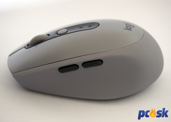 Vrchná časť obsahuje klasické ľavé a pravé tlačítko. Ďalej je tu koliesko s naklápaním a Easy-switch pre spárovanie s dvomi zariadeniami. Nechýbajú ani 2 LED so signalizáciou napárovaného zariadenia.