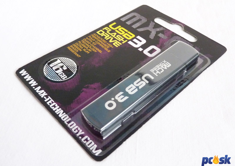 Od nemeckej spoločnosti Caseking.de sa mi do rúk dostal USB Flash disk značky Mach Xtreme zo série GX s kapacitou 16GB. Výrobca sa na svojej web stránke chváli použitím štvorkanálovej technológie pre rýchlosti až do 140MB/s pri čítaní, resp. 30MB/s pri zápise. Čo vlastne tieto štyri kanály znamenajú? V podstate sa to dá predstaviť ako malé SSD, s (podstatne) jednoduchším radičom. SSD dosahujú vysoké rýchlosti práve vďaka prístupu k dátovému úložisku cez viac kanálov, teda súčasne na viac NAND čipov. U pomalších USB 2.0 kľúčov viac kanálov nie je potrebných, možnosti rozhrania spoľahlivo vyťaží aj jednoduchší dizajn. Aby sa však mohli využiť možnosti USB 3.0, treba interne prepojiť radič cez viac kanálov.