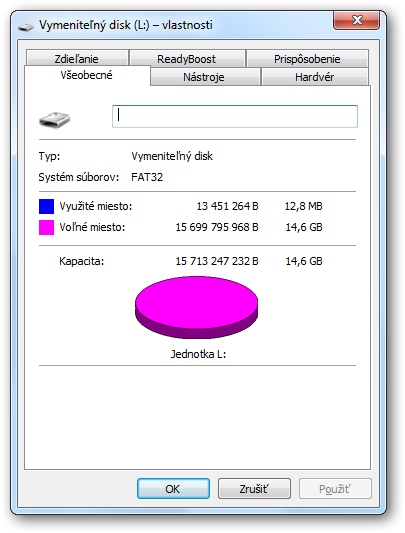 Po vsunutí do portu a rozpoznaní nového hardvéru si môžete skontrolovať dostupnú kapacitu. Tá je 14,6GB: