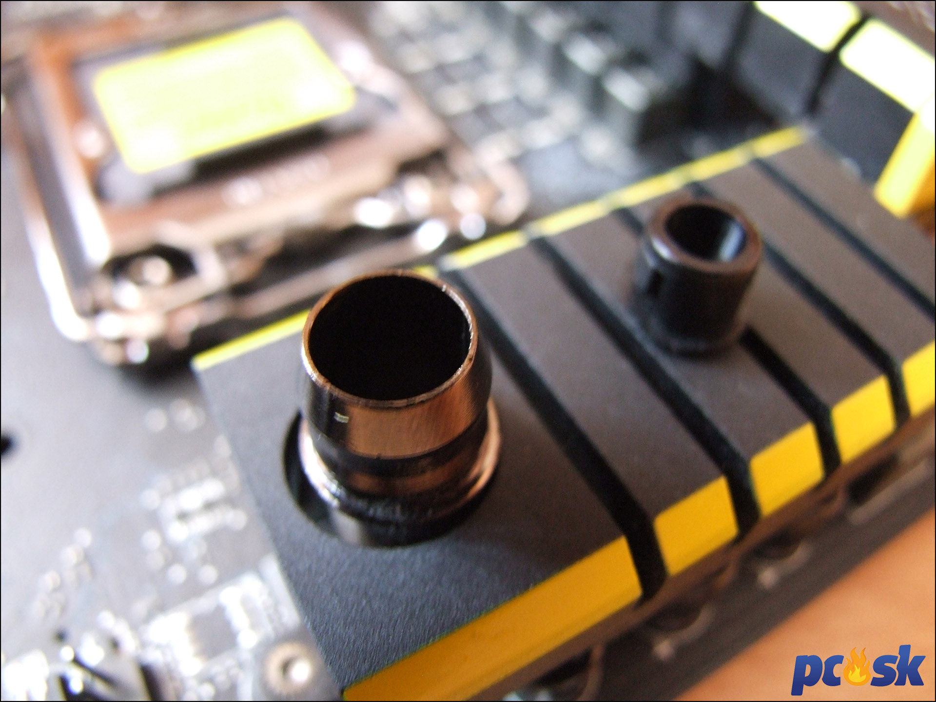Napájacia kaskáda je tvorená 12 fázami, ktoré riadi napäťový regulátor ISL 6388 od Interstil. MOSFETy chladia 2 pasívy, tretí nechladí nič a je kúsok nad PCB. Jeho úlohou je tak zväčšovať chladiacu plochu. Každý z troch pasívov je veľmi pevne prichytený dvojicou skrutiek. Pasívami prechádza jedna heatpipes, ktorá môže byť naplnená vodou, na čo slúžia 2 otvory v pasívoch.