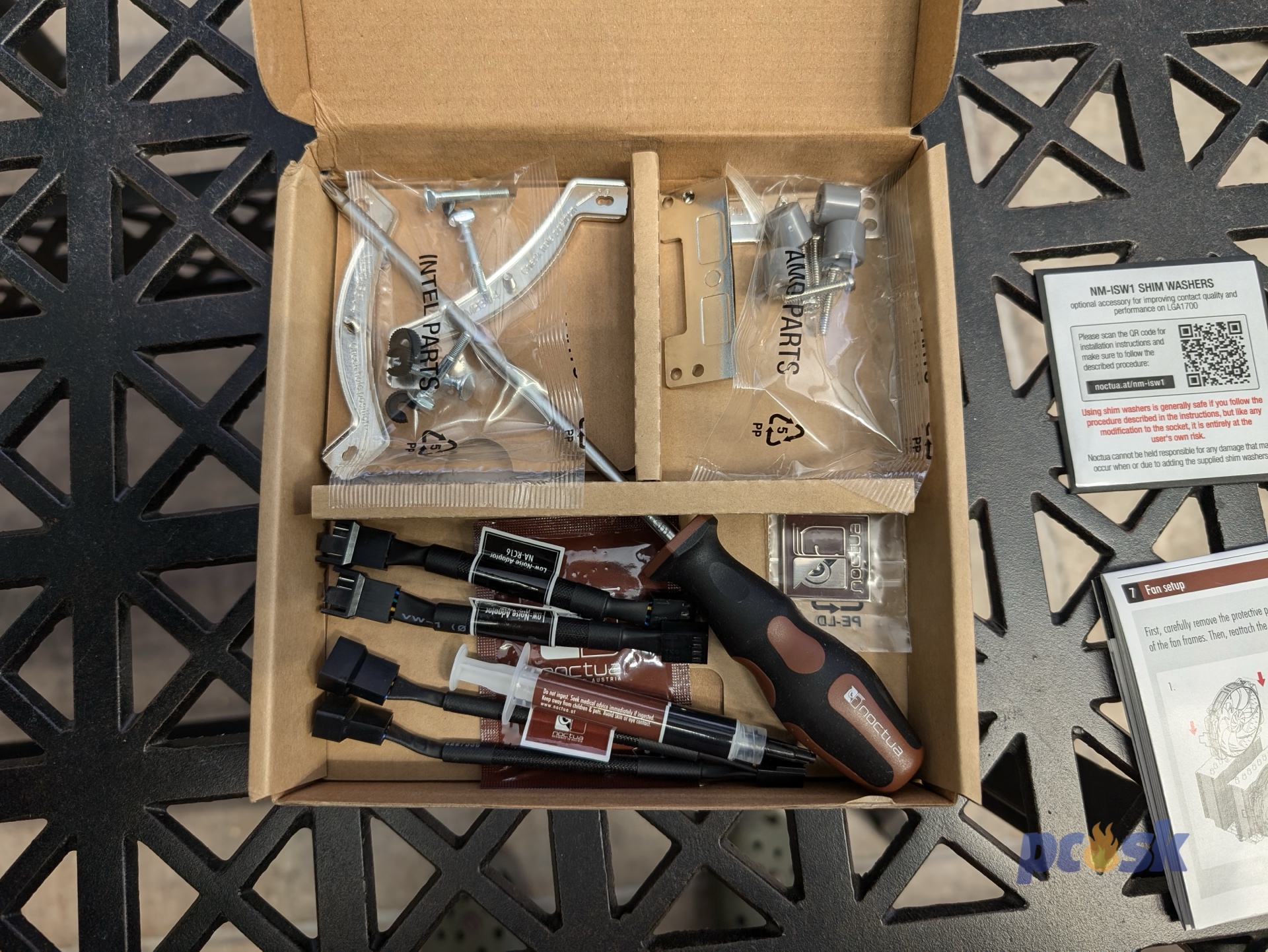 Balenie obsahuje nový torxový skrutkovač, offsetové spony pre AM5, ochranný rámik pre AM5 CPU a podložky pre LGA1700.