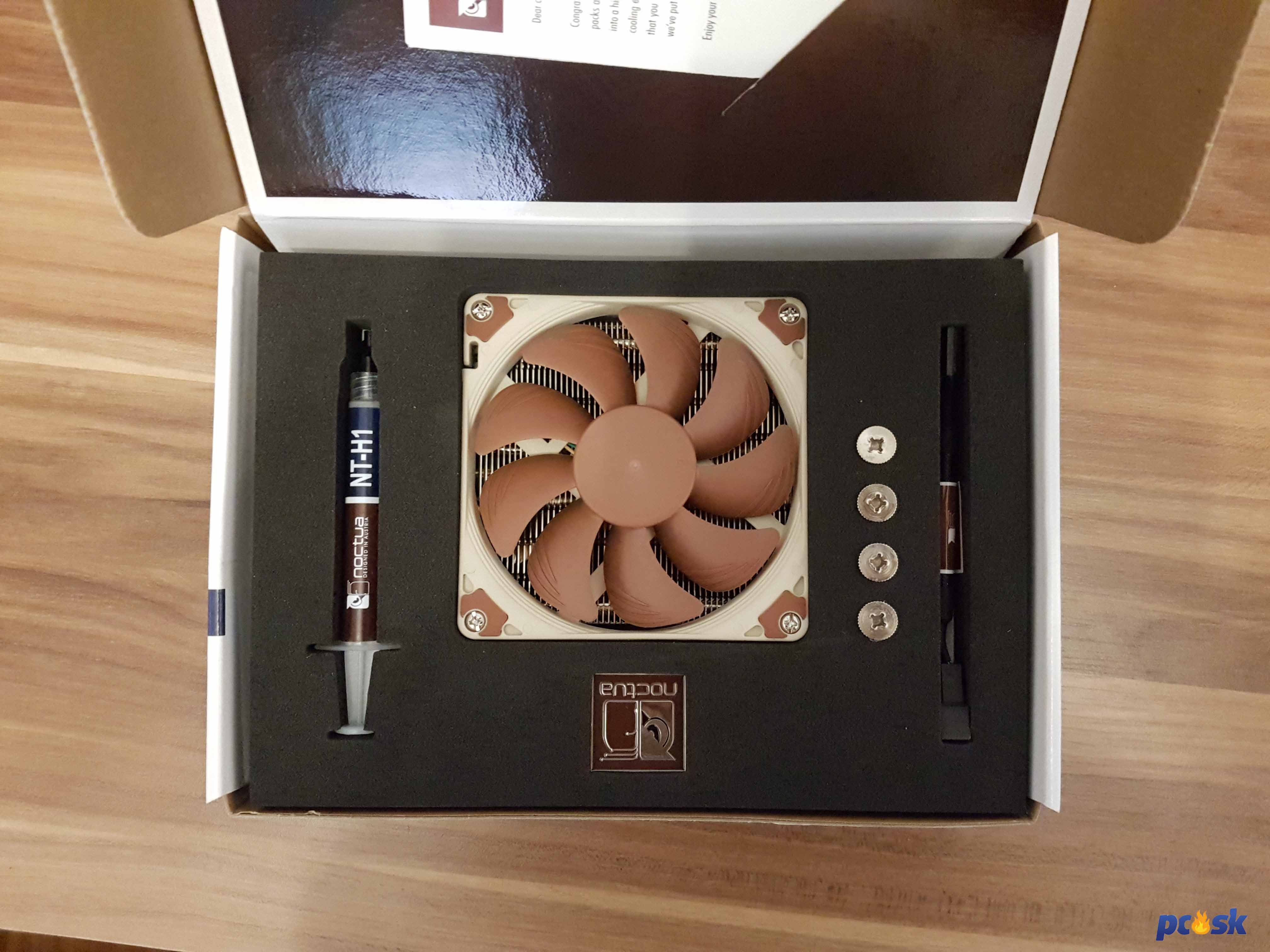 Noctua nešetrila ani na balení svojho lacnejšieho chladiča. Naopak, povedal by som, že si na ňom dali fakt záležať. Hneď ako otvoríte krabicu, na ktorej sú všetky špecifikácie chladiča a s ktorými socketmi ho môžete využiť, zbadáte chladič v celej kráse. Teda konkrétne NF-A9x14 PWM ventilátoru. Hneď vedľa neho sa nachádza všetko príslušenstvo, ktoré je pekne usporiadané.