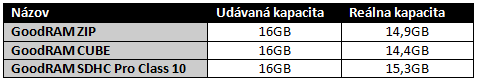 Oba kľúče ZIP aj CUBE majú udávanú kapacitu 16GB, rovnako ako pamäťová karta. Všetky sú dodávané v papierovo plastovom obale, kde na druhej strane je tabuľka s popisom koľko dát je možné uložiť na rôzne kapacity pamäťových médií. Celkom šikovný nápad ako vyplniť prázdne miesto na obaloch, detail, ale poteší. Výrobca tiež nezabúda pripomenúť doživotnú záruku.