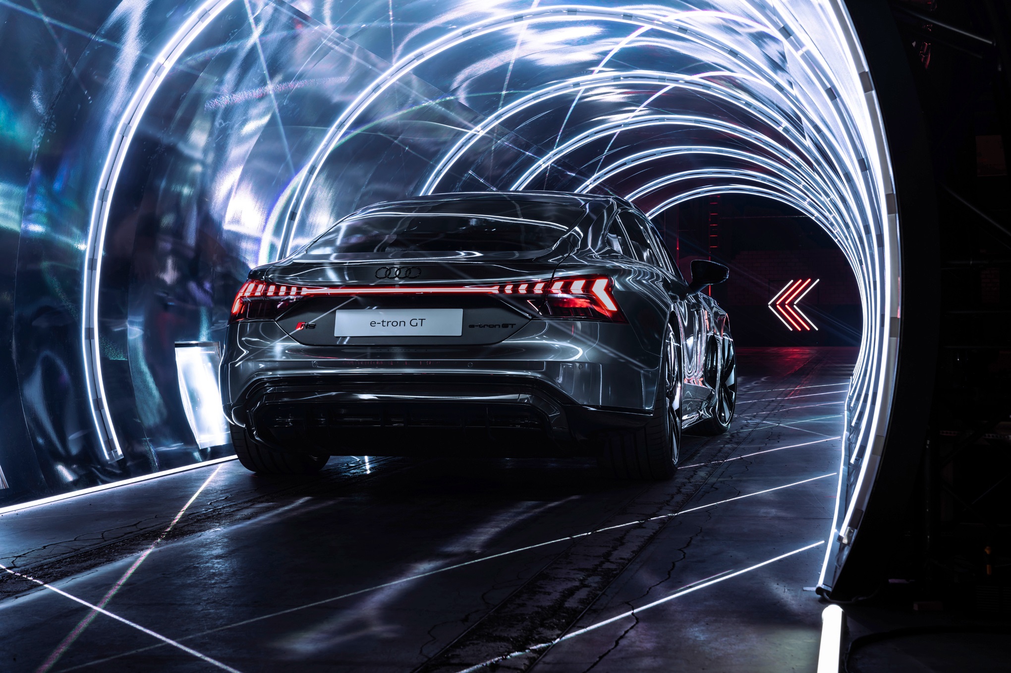 Model RS E-Tron GT má rovnaký predný motor ako základná verzia Quattro, má však výkonnejší zadný motor. Spoločne motory produkujú výkon až 590 koní alebo 637 koní v režime overboost. Audi RS E-Tron GT tak dokáže zrýchliť z nuly na 100km/h za 3.3 sekundy a dosahuje maximálnu rýchlosť 250km/h, zatiaľ čo model Quattro zrýchli z nuly na 100km/h za 4.1 sekundy a jeho maximálna rýchlosť je 245km/h.