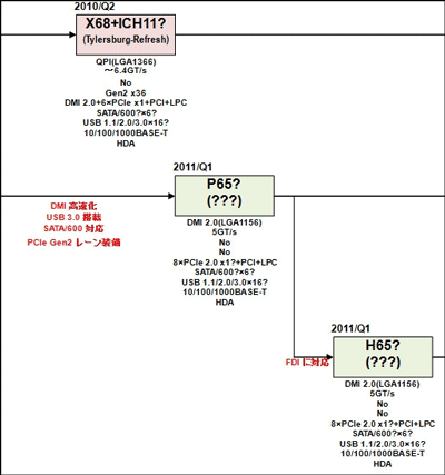 Severný mostík nazvaný nateraz ako X68 nevyzerá na veľký upgrade, skôr sa bude jednať o zlepšenie na úrovni starších X38 -> X48. Zaujímavejší však bude južný mostík ICH11.