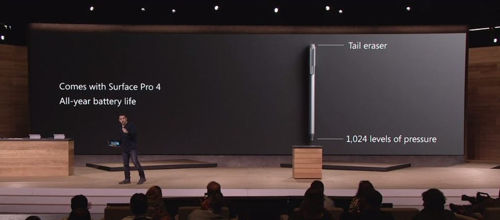 K tabletu je dostupné aj nové pero. Microsoft Pen ponúka až 1024 úrovni prítlaku. Na druhom konci má peru „gumu“. Na jedno nabitie by malo vydržať celý rok.