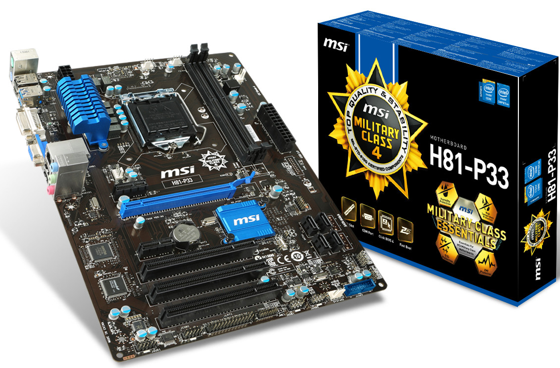 Práve do tejto kategórie spadá MSI H81-P33 v ATX prevedení, ktorá bude dopĺňať už uvedenú H81M-P33 (microATX). Disponuje len dvoma slotmi pre pamäte, jedným PCI-e 16x, jedným PCI-e 1x, trojicou PCI slotov, po dva SATA2 a SATA3 porty. V low-ende začínajú byť ATX dosky raritou, väčšinou sú práve menšieho formátu, pre tento kúsok kúsok bude medzi low-endom vyčnievať trochu väčšou konektivitou. Taktiež má 6-fázové napájanie CPU, čo je tiež v tejto kategórii ojedinelé, podobne ako dva PS/2 porty, ktoré sú nahrádzané USBčkami. Medzi výstupmi bohužiaľ nie je HDMI.