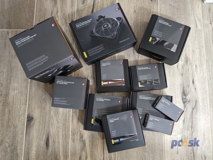 V krabici prišlo celkovo dokopy 11 menších krabíc - príslušenstvo HOME zahŕňa aj také drobnosti ako gumené rámiky, podložky, či Hub pre 8 ventilátorov (s napájaním alebo bez). Najväčším ťahákom je však jednoznačné stolový ventilátor a extra chladenie pre rôzne iné produkty ako NAS, zosilňovače a iné zariadenia, kde by sa externé chladenie zišlo. Stojan sa dá kúpiť aj samostatne, ak už máte doma nepotrebné ventilátory.