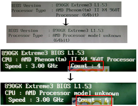 Túto teóriu sa už podarilo potvrdiť, po prvý krát verejne na základnej doske ASRock 890GX Extreme3. Na webe OCWorkBench sa objavili fotografie detekcie procesora v BIOS-e a aj screenshoty z prostredia Windows, ktoré zobrazujú najprv procesor Phenom II X4 960T a po aktivácii "ASRock UCC function" AMD Processor model unknown, už so šiestimi aktívnymi jadrami.