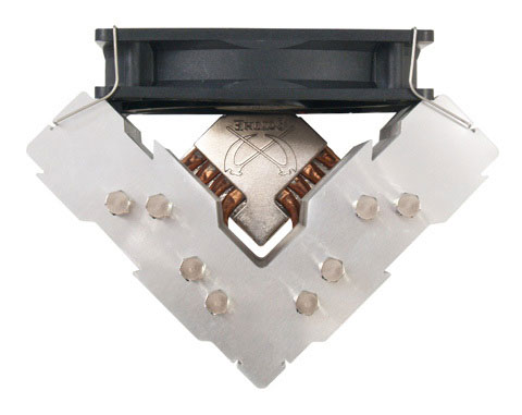 Vývojári v Scythe si zrejme stále nedajú pokoja a znova prichádzajú s niečim novým - tentoraz špeciálne tvarovaným chladičom typu tower ktorý by mal využívať ventilátor zdroja a aj ventilátor skrinky.Scythe Kama Angle je hodný svojho mena - jedná sa o chladič s pasívnou časťou s dosť netradične riešeným tvarom. 8 heat-pipe je rozdelených na dve skupiny po 4, tie ústia do hliníkových rebier ktoré zvierajú uhol 90°.