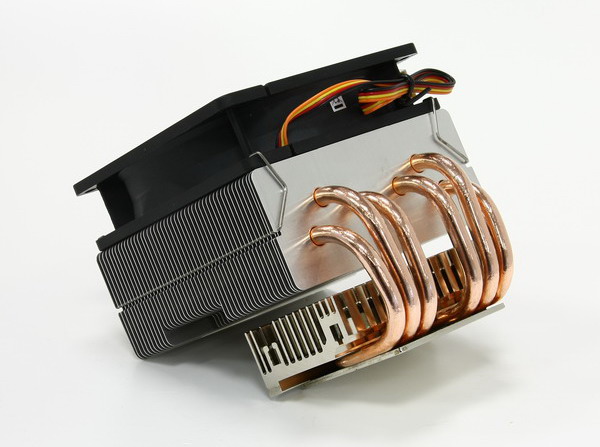 ktorých má chladič celkovo tri, avšak nie sú v priamom kontakte s IHS procesora, teplo sa do nich dostáva cez tenkú základňu. O prievan sa stará 92mm ventilátor, ktorý pracuje v rozmedzí 300-2500RPM.