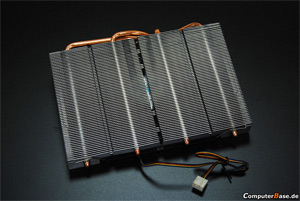 Ide o 390 gramov vážiaci pasívny chladič, so štyrmi heat-pipe trubicami vychádzajúcimi zo základne do hliníkových rebier. Zvláštnosťou je umiestnenie ventilátora - ten je z "vnútornej" strany chladiča, teda od karty, medzi PCB a pasívom. Ako ventilátor bude použitý Scythe Slip Stream Slim.