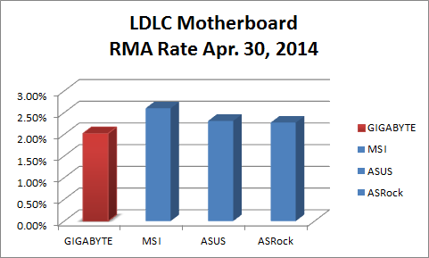 Hardware.fr získal tieto údaje z veľkého francúzskeho predajcu LDLC. Ukazovateľ RMA je považovaný za významný prvok vykazujúci kvalitu komponentov a sleduje sa pre všetky komponenty. Posledná štatistika ukázala, že v oblasti základných dosiek je najspoľahlivejšou značkou spomedzi 4 hlavných výrobcov Gigabyte nasledovaný MSI, ASUS a ASRock. Za pozornosť stojí tiež fakt, že Gigabyte obhájil prvenstvo už 4 sledované obdobia po sebe. Gigabyte sa víťazstvom pochválil aj na svojom blogu a do súvisu s kvalitou ich základných dosiek dáva technológiu Ultra Durable.