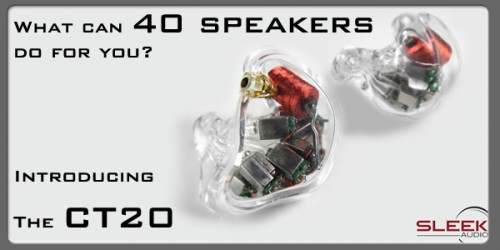 O mierne šialený audiofílsky počin sa postarala firmička s názvom SLEEK AUDIO ktorá sa zaoberá výrobou tzn. custom riešení. Custnom riešenie nieje žiadná prevratná novinka, firiem ktoré vám vedia podľa otlačku ucha zhotoviť na mieru slúchadlá je v poslednej dobe ako húb po daždi. Čo však zaujme je model CT20 ktorý sa pýši dvadsiatimi meničmi na kanál. Áno čítate dobre, v dvoch slúchadlách neuveriteľných štyridsať meničov! Samozrejme takéto slúchadlá nie sú určené pre bežných smrteľníkov no taktiež si neviem celkom predstaviť audiofila ktorý by vyvalil takú čiastku za slúchadlá.