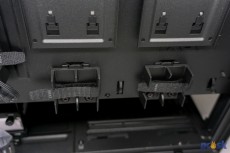 Druhej strane skrinky dominujú hlavne priestory na vedenie káblov. Tých je tu naozaj dosť a nebude problém s umiestneným káblov tak, aby ste bočnicu zatvorili úplne bez problémov. Ak by vám tu z nejakého dôvodu vadili, všetky vodiace držiaky na káble môžete dať dole.