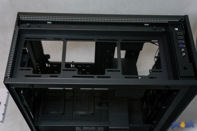 Podpora radiátorov pre vodné chladenie je taktiež dostatočná a ak ste nepreskočili špecifikácie skrinky viete, že do H700i môžete nainštalovať 280mm alebo 360mm radiátor do prednej časti, 280mm alebo 360mm do hornej pozície a 120 alebo 140mm radiátor do zadnej časti. Držiak v hornej časti, do ktorého sa prichytí radiátor vodného chladenia alebo ventilátory, sa dá zo skrinky odskrutkovať a uľahčíte si tak samotnú montáž.