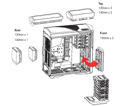 Phantom 630 jednoznačne poteší aj fanúšikov vodného chladenia. Manuál popisuje viacero možných konfigurácií, stačí si vybrať.
