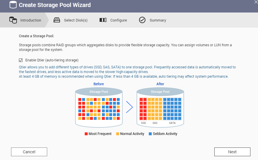 Už pri verzii QTS 4.3 sa prepracovala aplikácia „Úložisko a snímky“ – pribudla podpora pre SSD cache a SSD over provisioning pre zrýchlenie SSD a zníženie jeho opotrebenia, ako som písal vyššie. Testoval som túto funkciu a merateľný je hlavne nárast pri zápise. Osobne však stále odporúčam nainštalovať OS na SSD. Prípadne môžete tiež hodiť SSD do RAIDu.