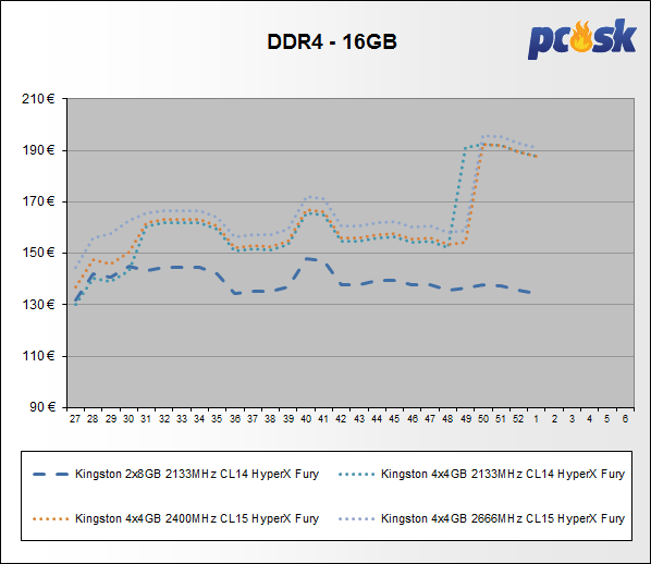 Po dlhom čase všetky druhy pamätí zlacneli až do 20,7%. Z prehľadu vypadli ADATA 2x2GB 800MHz CL6 (DDR2), ADATA XPG Z1 2x16GB 2400MHz CL16 (DDR4) a ADATA XPG Z1 2x16GB 3000MHz CL16 (DDR4).