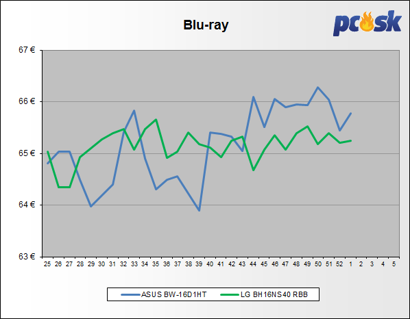 Ceny DVD a Bluray napaľovačiek kolísali od +3,4% do -0,4%.