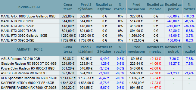 Zmena cien sa tentokrát dotkla len AMD, kde šli cenoy dole do -0,6%.