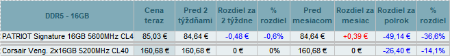 Pamäte DDR3 zlacneli do -0,6%. U DDR4 boli zmeny od vysokých +28,2% do -0,6%. DDR5 zlacneli do -0,6%. .