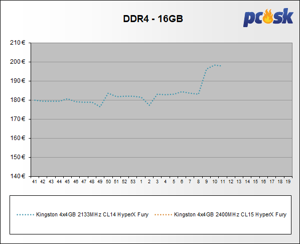 Pamäte DDR3 zdraželi do +8,7%. U DDR4 nastalo zdraženie až do +31,0%. Z prehľadu vypadla DDR4 pamäť GOODRAM IRDM 2x4GB 2400MHz CL17.