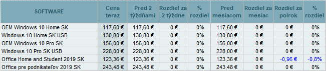 Ceny software sa tentokrát nemenili.