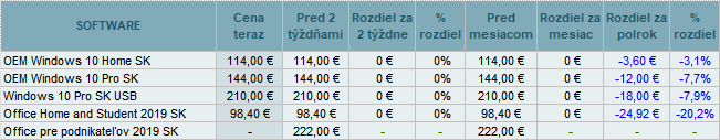 Ceny software sa tentokrát nemenili.