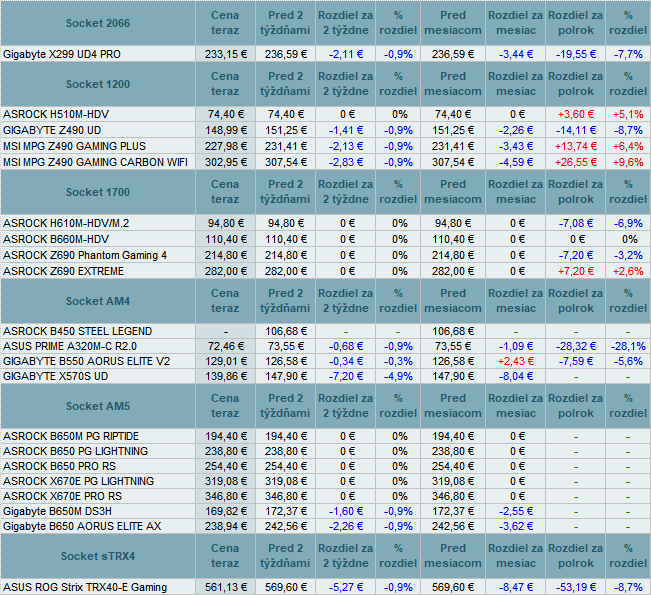 Základné dosky menili ceny do -4,9%. Z prehľadu vypadla doska ASROCK B660 Pro RS pre socket 1700.