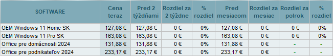 Na poli software sa ceny nezmenili.