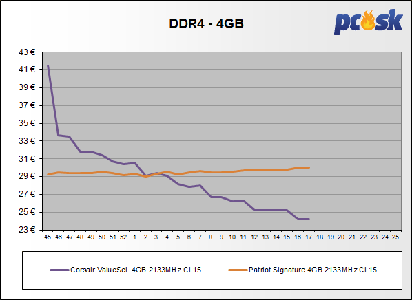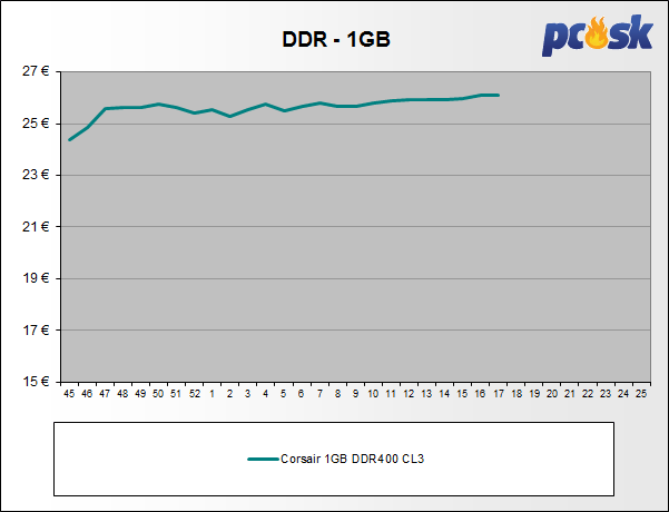 Ceny pamätí DDR a DDR2 vzrástli do 0,7%. U DDR3 modelov nastali zmeny od +0,7% do -7,5%. Modely DDR4 menili ceny od +0,7% do -7,6%.