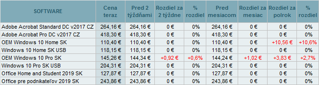 Ceny software mierne vzrástli do +0,6%.