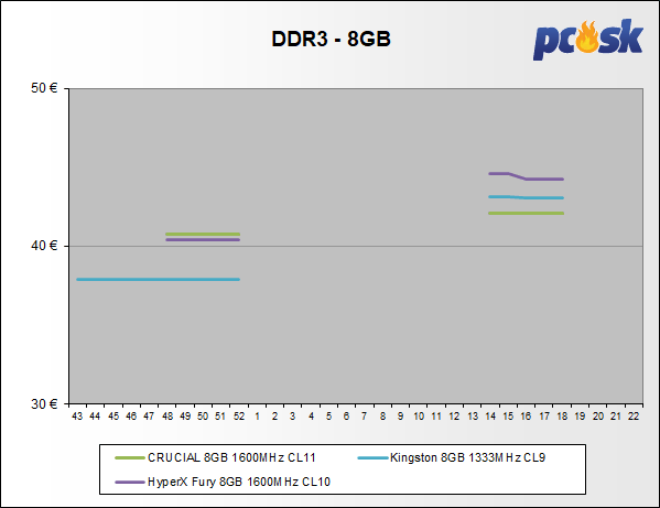 Pamäte DDR3 zlacneli do -9,3% a DDR4 menili ceny od +0,3% do -9,4%.