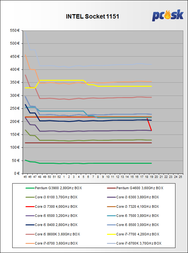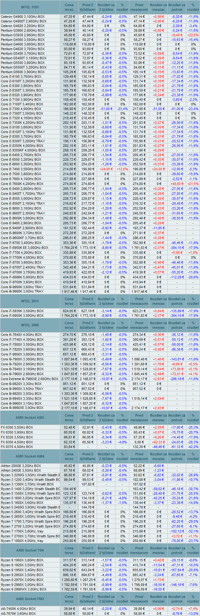 Ceny procesorov Intel sa menili od +12,6% až do -23,4%. Modely od AMD zlacneli "len" do -4,9%.