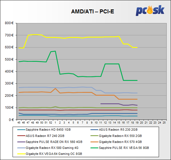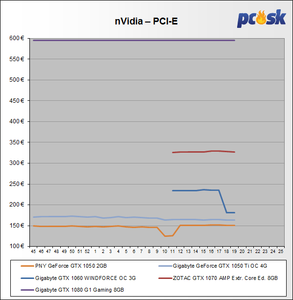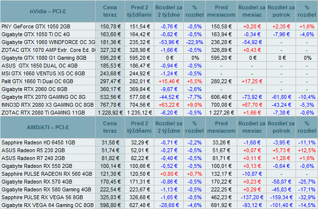 Grafické karty nVidia menili ceny od +9,0% až do -22,9%. U AMD boli zmeny od +0,7% do -4,6%.