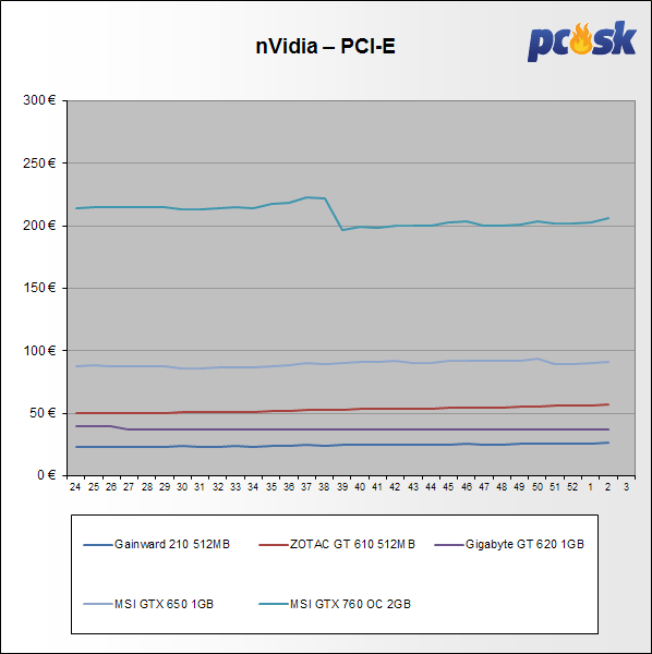 Všetky grafické karty za uplynulé 2 týždne zdraželi do 2,0%.