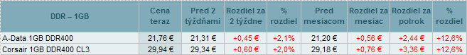 Ceny DDR a DDR2 zdraželi do 2,1%. U DDR3 nastali zmeny cien od +12,2% do -9,6%.