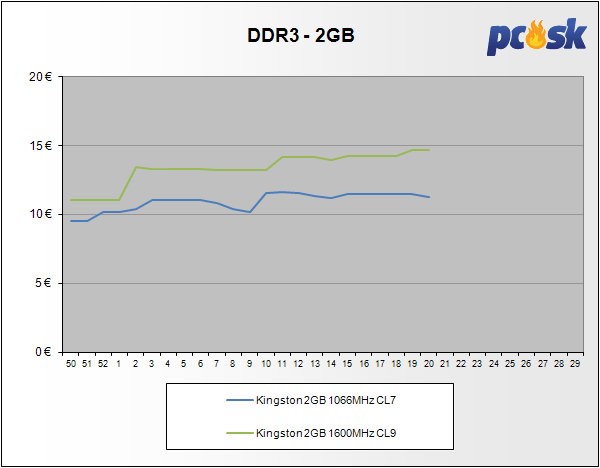 Na poli pamätí sa väčšinou zdražovalo, najviac však u DDR3. U DDR pamätí nastalo mierne zdraženie do 2,3%. Modely DDR2 menili ceny od +6,5% do -0,6%. Nakoniec u DDR3 nastali zmeny od +58,3% do -1,8%.