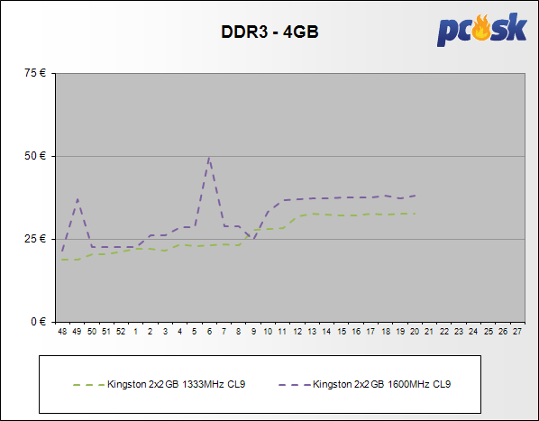 DDR pamäte mierne zdraželi do 0,7%. U DDR2 nastalo zlacnenie do 9,5%. Avšak na poli DDR3 pamätí sa zdražovalo až do 22,8% a len jeden model mierne zlacnel o 0,4%.