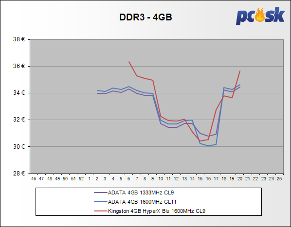 Všetky pamäte za posledné 2 týždne zdraželi do 7,2%. Z prehľadu vypadla DDR3 Corsair Veng. 3x4GB 1600MHz CL9.