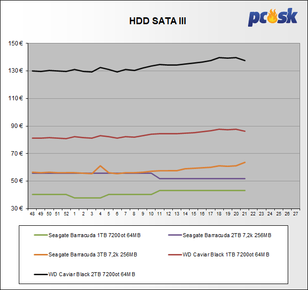 Pevné disky menili ceny od vysokých +17,1% až do -16,2% a SSD od +11,0% do -1,3%.