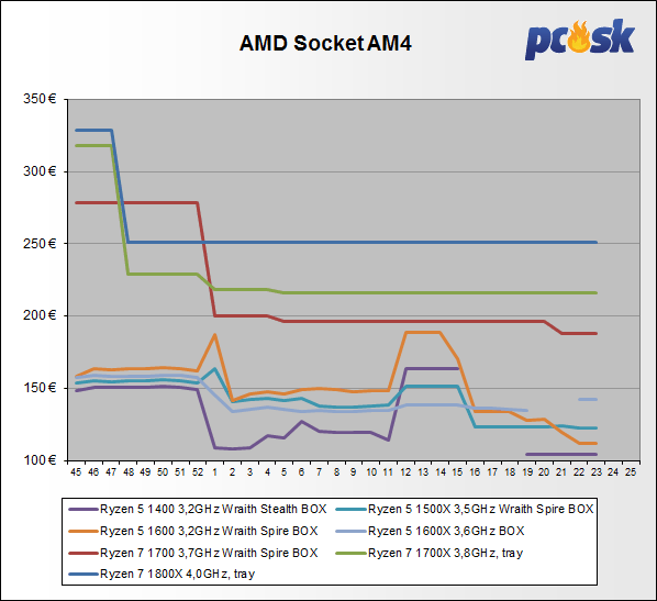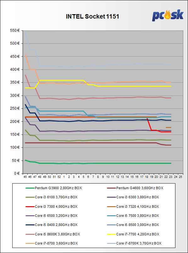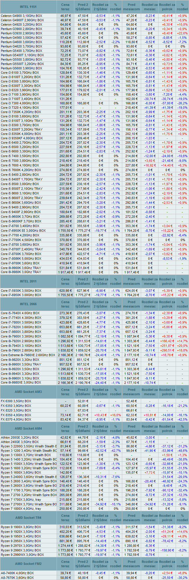 Ceny procesorov Intel klesli do 2,2%. U modelov od AMD boli zmeny od vysokých +16,6% až do -42,7%. Z prehľadu vypadol Core i3 7300T 3,50GHz BOX (1151).