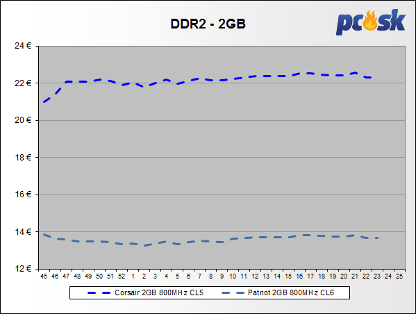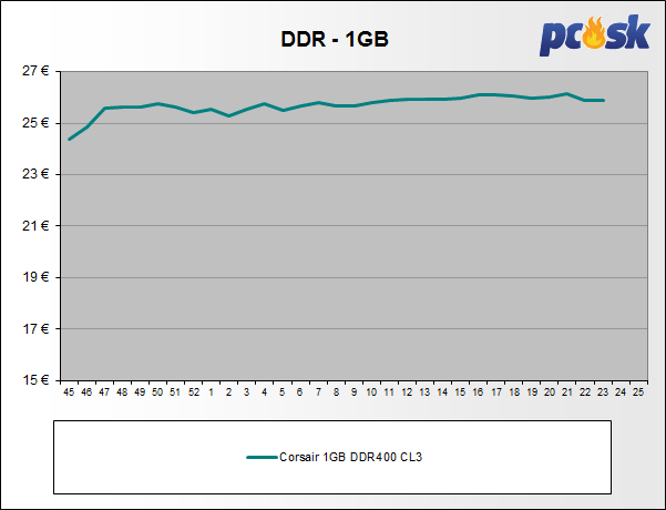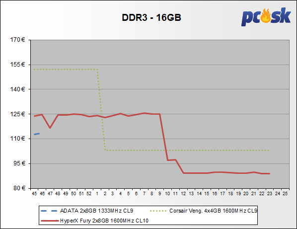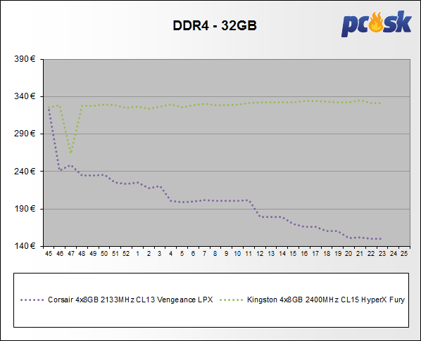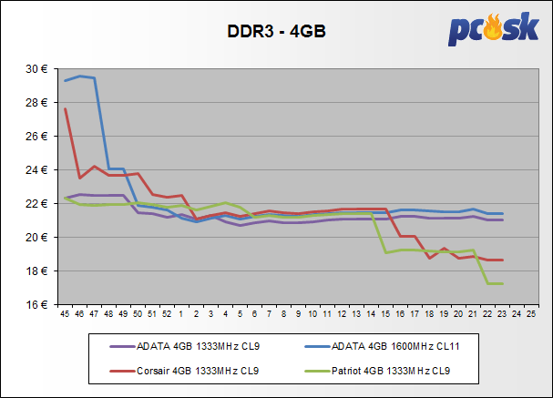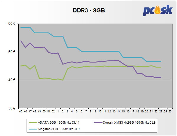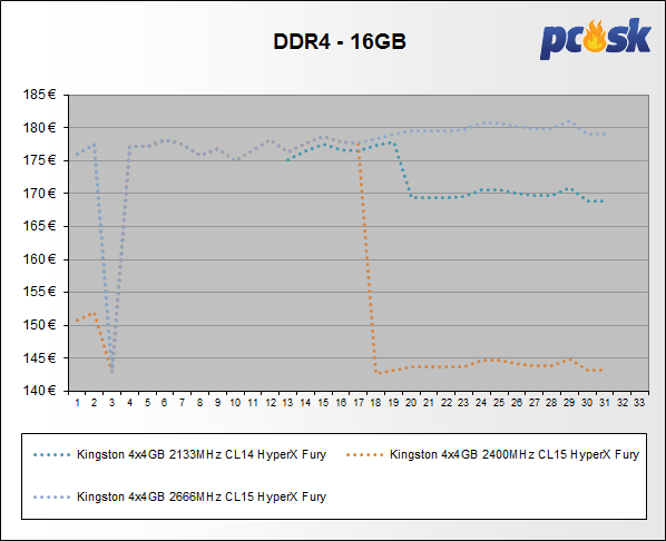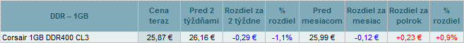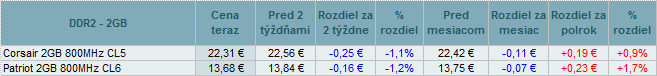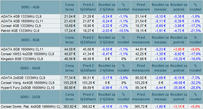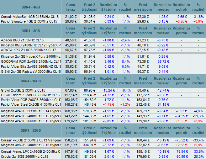 Ceny DDR a DDR2 klesli do -1,2%. U DDR3 bol pokles až do -10,5%. Modely DDR4 kolísali s cenami od +1,2% až do -16,4%.