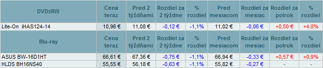 Ceny DVD a Bluray napaľovačiek poklesli do -1,1%.
