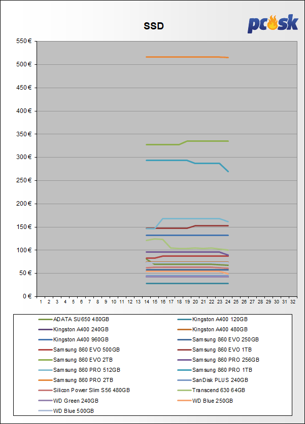 Pevné disky menili ceny od +2,8% do -5,6%. SSD zlacneli do -10,0%.