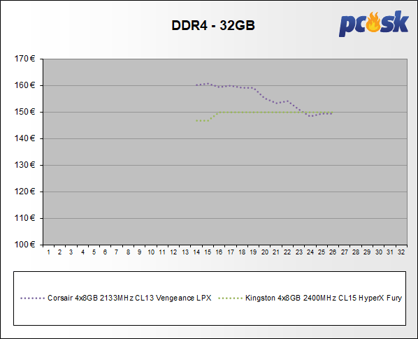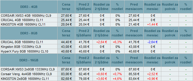 Pamäte DDR3 zdraželi do +6,3% a DDR4 menili ceny od +1,0% do -2,8%.