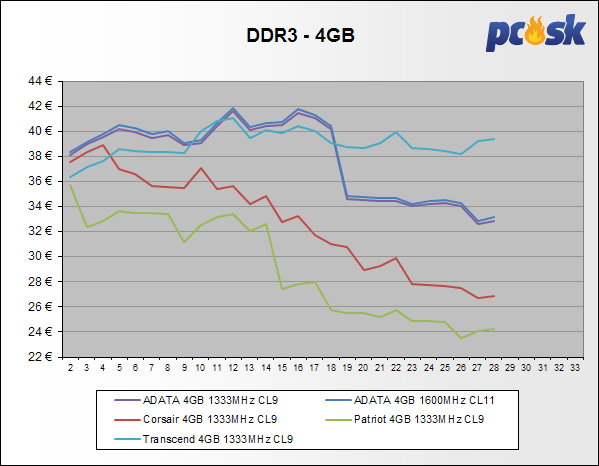 Pamäte DDR zdraželi do 3,1%. U DDR2 nastali zmeny od +3,1% do -1,5%. DDR3 vo vúščine zlacneli do 6,5% a len niekoľko modelov zdraželo do 3%. Pamäte DDR4 menili ceny od +3,1% až do -11,2%. Z prehľadu vypadla DDR3 pamäť Kingston 2x4GB 2666MHz CL11 XMP.